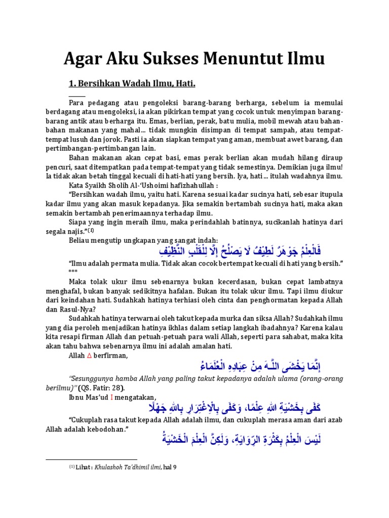 Ilmu Tidak Mungkin Berada Di Hati Aneka Remaja Islam Facebook