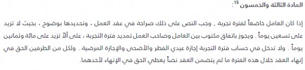 المادة 53 من نظام العمل السعودي. يسمى هذا النظام بنظام العمل. يجوز لصاحب العمل فسخ عقد العمل دون سابق إنذار ودون مكافأه أو تعويض إذا تغيب الموظف أكثر من 15 يوما متتالية على أن يسبق الفصل إنذار كتابي من صاحب العمل بعد انقطاعه 10 أيام. نقدم لكم في هذا المقال من موسوعة شرح نص المادة 83 من نظام العمل السعودي الذي تم إصداره في عام 1426هـ ومن خلاله يضمن أصحاب العمل والعمال حقوقهم حيث يضم النظام حقوق التي يجب أن ينالها كلا من صاحب العمل والعامل في المقابل. تسري أحكام هذا النظام على.