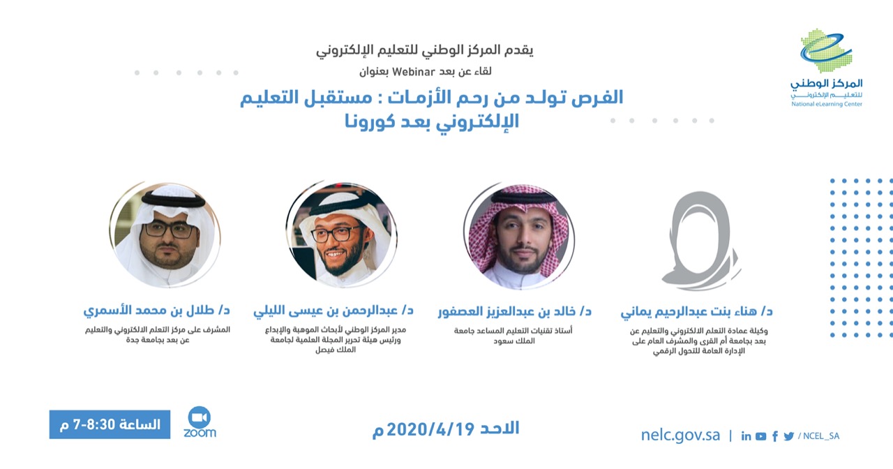 استعرضت المشرفة العامة على الإدارة العامة للتعلم الإلكتروني والتعليم عن ب عد بوزارة التعليم الدكتورة عهود الفارس منجزات وجهود المملكة في التعليم عن ب عد والحلول التي قدمتها وزارة التعليم في مواجهة جائحة كورونا. الاثنين 2020 04 20 منصات البرنامج الوطني للمحتوى التعليمي المفتوح أدوارها الحالية والمستقبلية الأحد 2020 04 19. يهدف المركز الوطني للتعلم الإلكتروني والتعليم عن بعد إلى تحقيق عدد من الأهداف الرئيسة وهي.