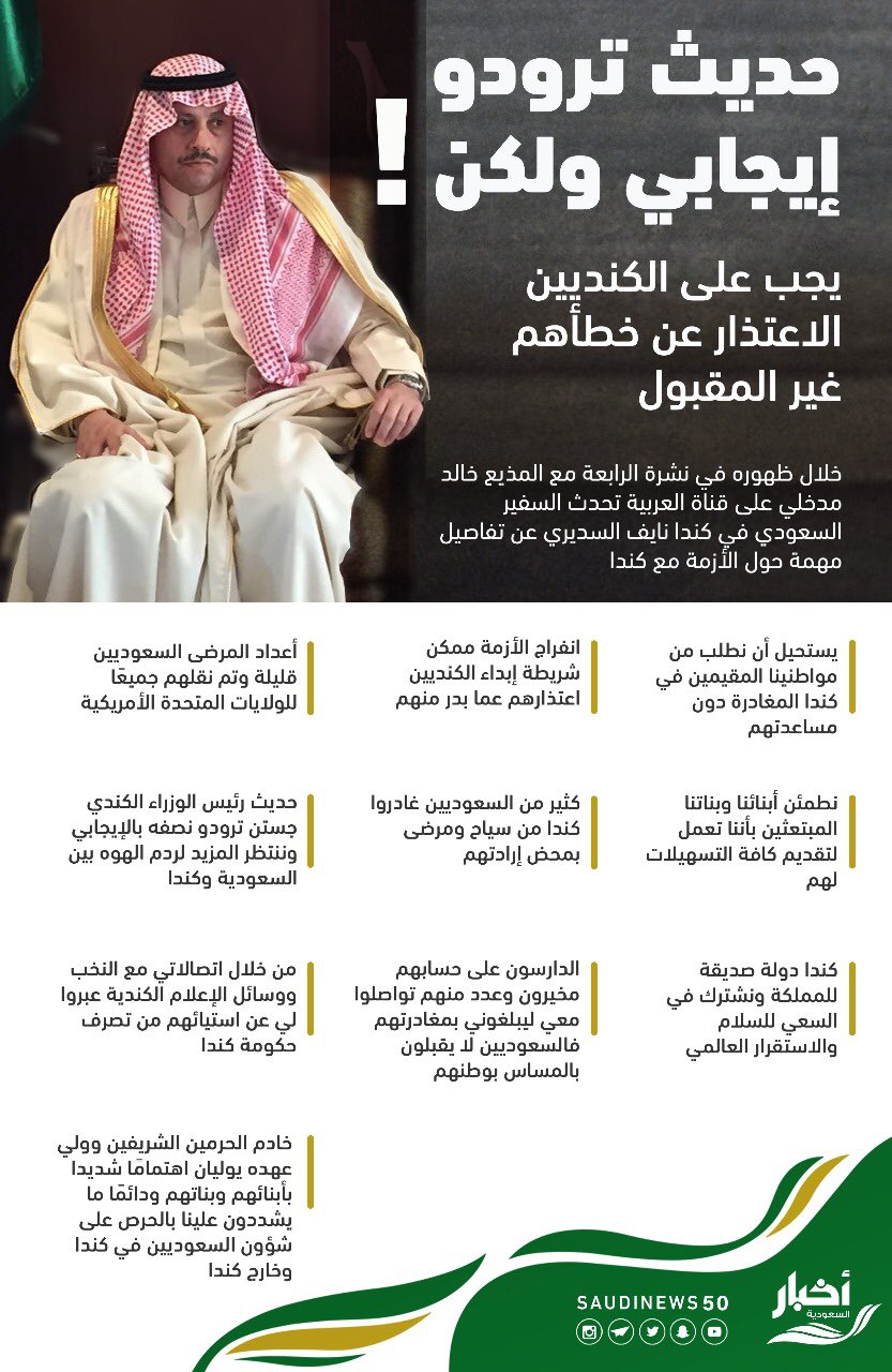 أخبار السعودية A Twitter انفوجرافيك السفير السعودي في كندا على الكنديين الإعتذار عن خطأهم غير المقبول السعودية تطرد السفير الكندي Https T Co Tlzccdoo3w