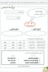ورقة عمل قياسبة الصف الأول لغة عربية الفصل الأول المناهج السعودية