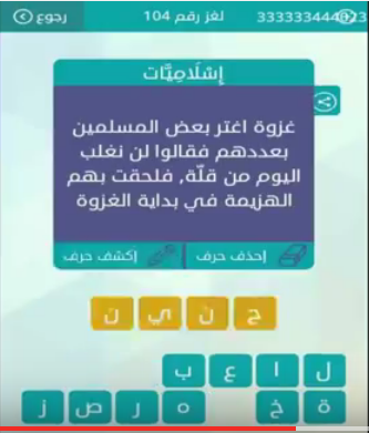 اول معركة هزم فيها المسلمون بعد احد. ماهي اول معركة هزم فيها المسلمون بعد احد الاجابة الحل. من 5 حروف لعبة كلمات متقاطعة الاجابة الجسر اتمنى ان تنال استحــسانكم وبانتظار رددودكـــم. إسم أول معركه ه زم فيها المسلمون بعد غزوة أحد هي معركة الـ. ما هي اول معركة هزم فيها المسلمون بعد احد من 5 حروف س ئل ديسمبر 28 2017 بواسطة مجهول ما هي أول معركة ه زم فيها المسلمون بعد أحد مكونة من خمسة 5 احرف لعبة سبع كلمات الجديد لغز رقم 727.